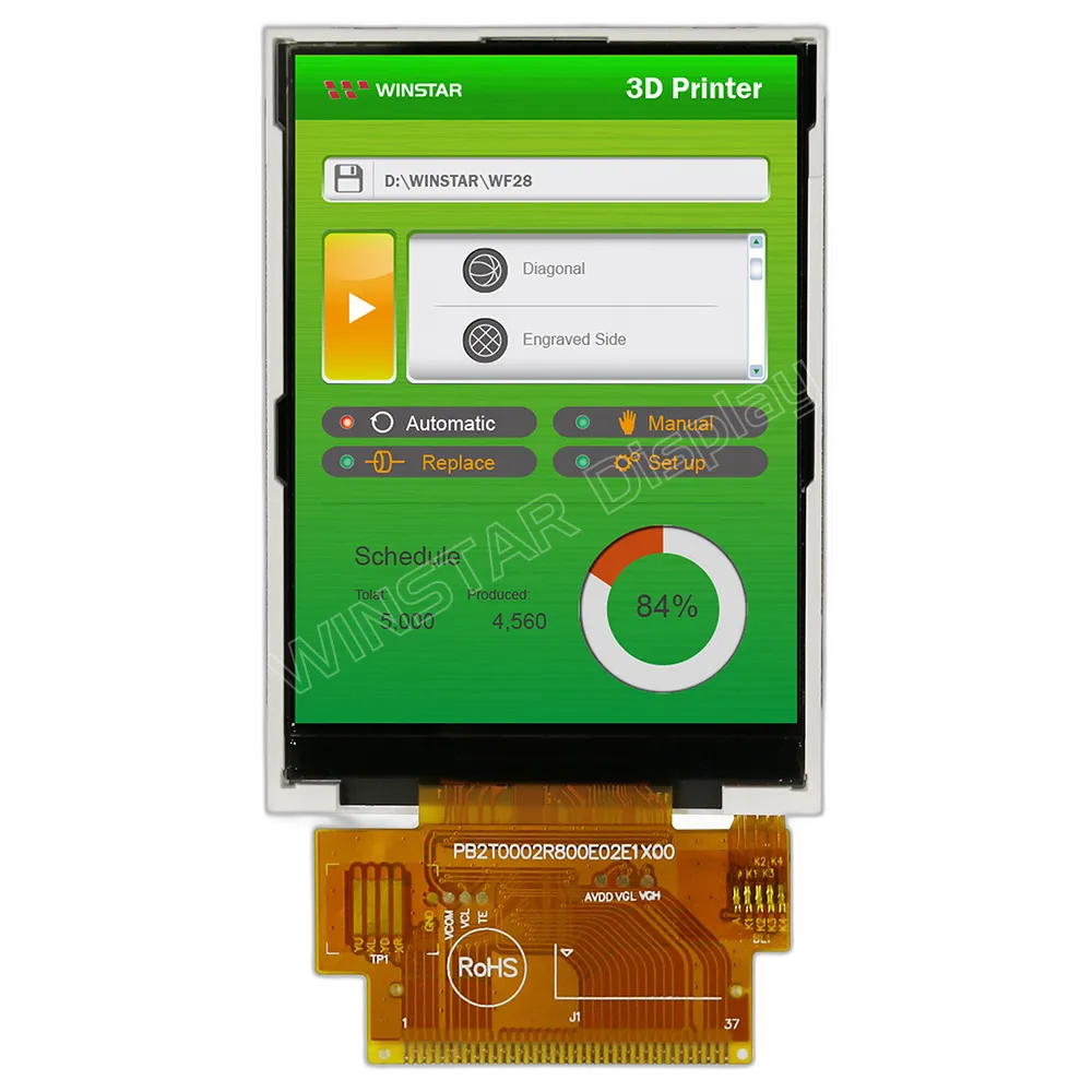 Elevate your display solutions with the WF28ETLAJDNN0 Winstar 2.8" 240×320 LCD-TFT display, designed for optimal clarity and performance. This compact yet powerful screen offers a vibrant resolution of 240×320 and an aspect ratio of 3:4, delivering sharp and vivid images. With a brightness of 500 cd/m², expect exceptional visibility even in challenging lighting conditions. The WF28ETLAJDNN0 features a wide operating temperature range of -20°C to 70°C, ensuring reliability in various environments. Equipped with the ILI9341 V controller and a versatile 16080, 8080 interface, this display integrates seamlessly into your projects. Its active area of 43.2×57.6 mm and outline dimensions of 50.0×69.2 mm make it an ideal choice for compact applications. Trust in Winstar's quality and innovation to enhance your display needs with this high-performance, professional-grade LCD-TFT display.